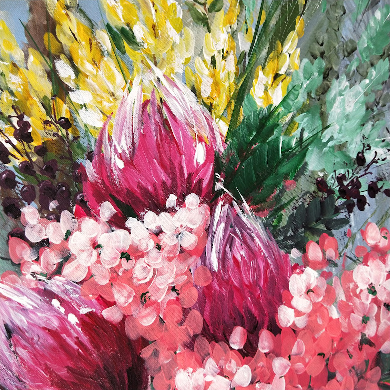 I sort of worked through it and decided to share it... there are some bits I like and some I don't... the whole thing with painting is simply the process... I think that is half the joy... just watching the colours go onto the canvas... worse case scenario is you paint over it... no lives lost!